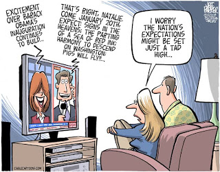 I did not vote for Barrack Obama, but he seems to be a skillful diplomat and promises to stay true to bipartisan statutes. I have faith in the system and believe that he has been elected for a reason. As a president it is his duty to this country to represent Americans well on the international front as well as the domestic front. He is responsible for securing our civil liberties inside our borders as well defending our sovereignty within the international community. Now can you imagine having this on your shoulders (as well as hundreds of other tasks) AND having to be the SAVIOR that so many are expecting you to be? It is a sham and although I think it is terrific to see so many people out and about refueling their patriotic tanks and gearing up to support a man they view as the “change” this country needs, I feel as though this may come back to bite them in the tushes. He is only a man and that is something that has seemingly been forgotten.