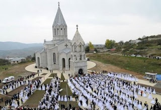 “On October 16th, in the Republic of Artsakh,internationally known as Nagorno-Karabakh, the country celebrated a mass wedding of 700 young couples. Artsakh is a small, aparently soon to be thriving country, in a territory disputed between Azerbaijan and Armenia. This was sponsored by the Nagorno-Karabakh as a way to stimulate growth and optimism for their country. I’m sure this will help them with a population increase…”