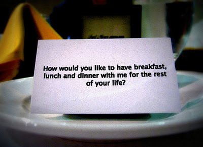 Aww, you two are gorgeous together! I really love the “how would you like to have breakfast, lunch and dinner with me for the rest of your life?”