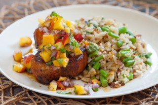 One of the meals for next week: Spice-Rubbed Pork Medallions with Peach Salsa, YUM.
