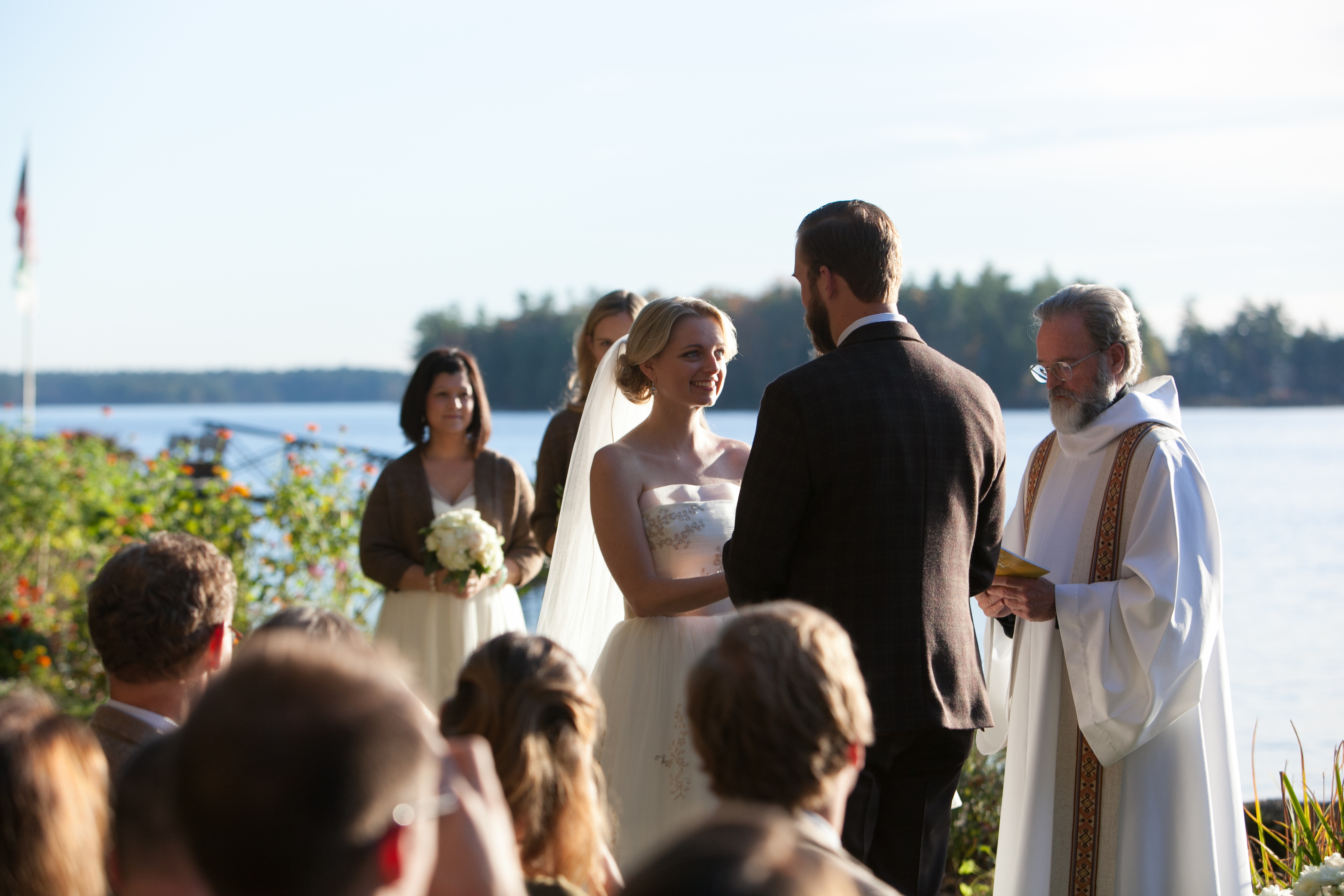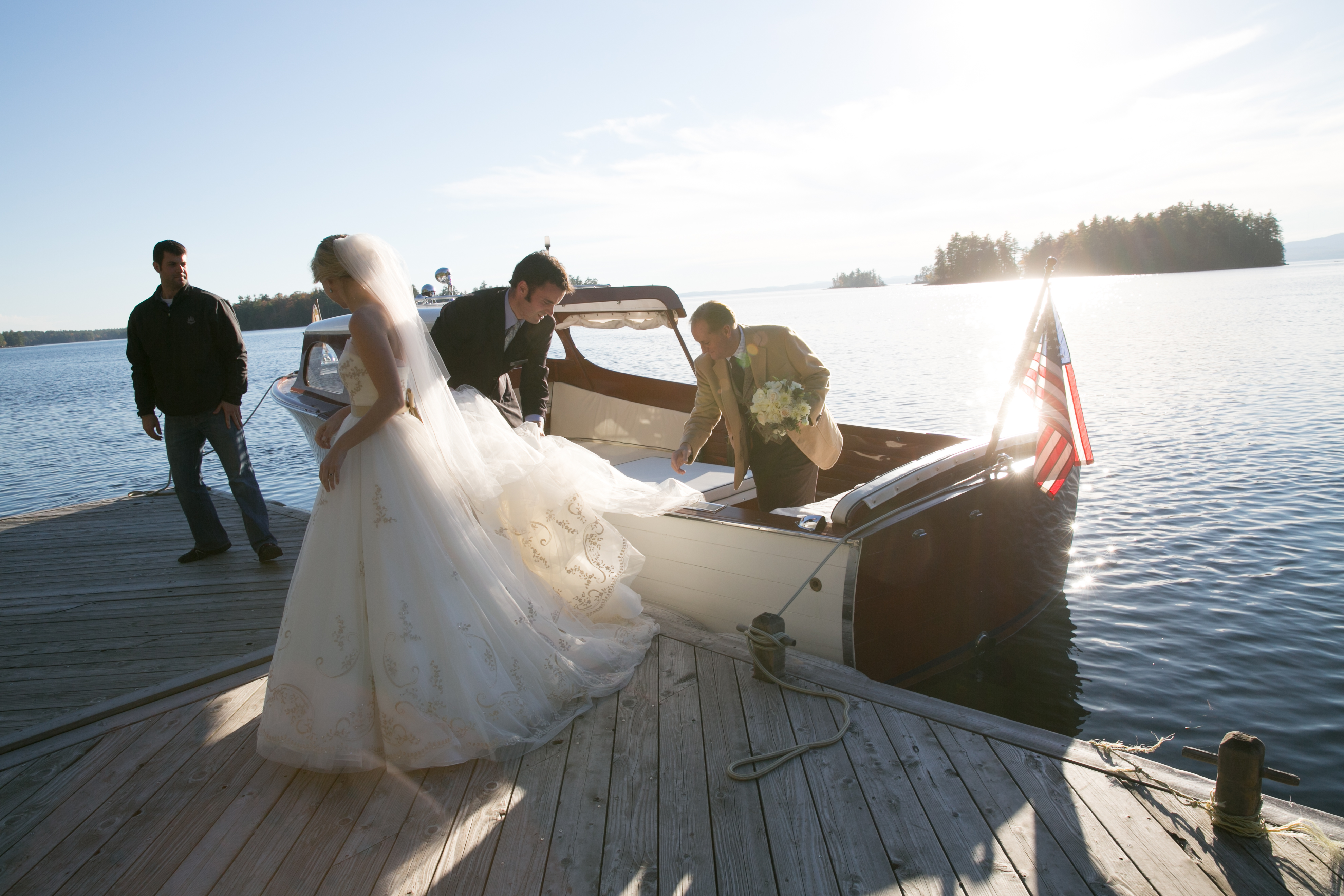 Us ladies got ready on one side of the venue and the boys got ready in a cabin on the other side of the venue, close to the ceremony site. Once the girls were all dolled up, they walked over to the ceremony and my dad and I headed over to the boat that would take us up to the ceremony. It’s not as over-the-top or tacky as it may sound! Haha It’s a beautiful, classic Chris Craft boat. It was so nice to spend those moments with my dad, on the water, and very cool to ride up and see everyone waiting for us.